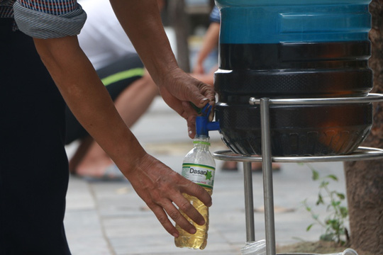 Nói về việc làm đầy ý nghĩa này, chủ nhà số 9 Hàng Bông lại rất từ tốn: "2 năm nay rồi, cứ đầy rồi vơi liên tục, có những ngày nắng nóng cao điểm nhiều khi năm đến sáu chục bình cỡ lớn là chuyện bình thường".