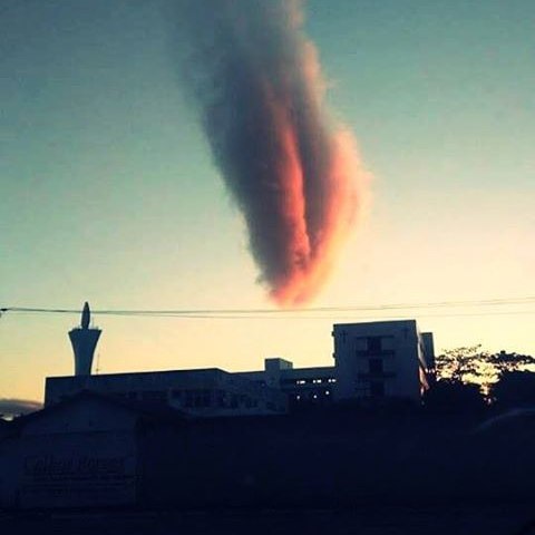 Ở Brazil, người dân đã chứng kiến cảnh tượng lạ kỳ. Một đám mây có màu sắc kỳ lạ và hình thù như thiên thạch. Chứng kiến đám mây, người dây cứ ngỡ như thấy thiên thạch "ngày tận thế" lao xuống Trái Đất.