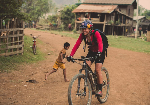 Rebecca Rusch trên hành trình đạp xe xuyên Đường mòn Hồ Chí Minh vào năm 2015