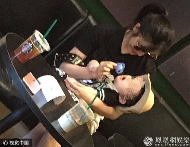Mới đây, một fan may mắn bắt gặp nàng "Tiểu Long Nữ" Trần Nghiên Hy tại một cửa hàng cafe, còn ẵm trên tay con trai Tiểu Tinh Tinh đi cùng. Đây là một trong số những lần hiếm hoi fan "tóm" được hình ảnh hai mẹ con bên ngoài. Bé Tiểu Tinh Tinh dù được che mặt song nhiều người vẫn dễ dàng nhận ra hình ảnh bụ bẫm, đáng yêu của bé.