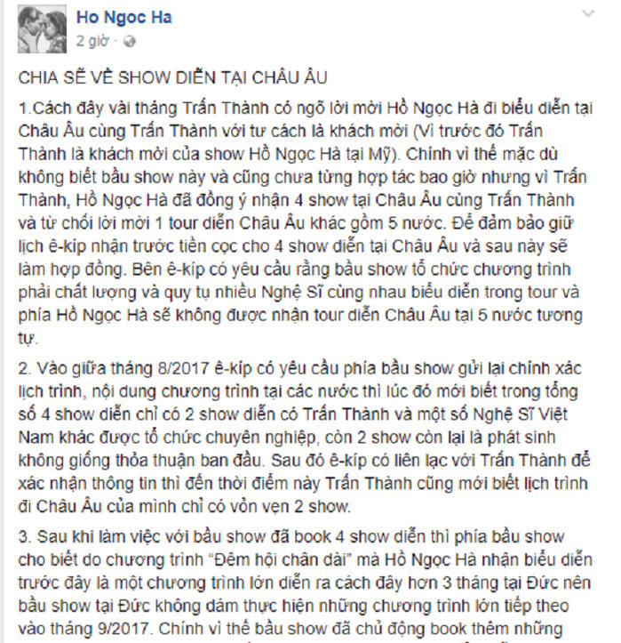 Hà Hồ chính thức lên tiếng bị tố bỏ show ở Châu Âu
