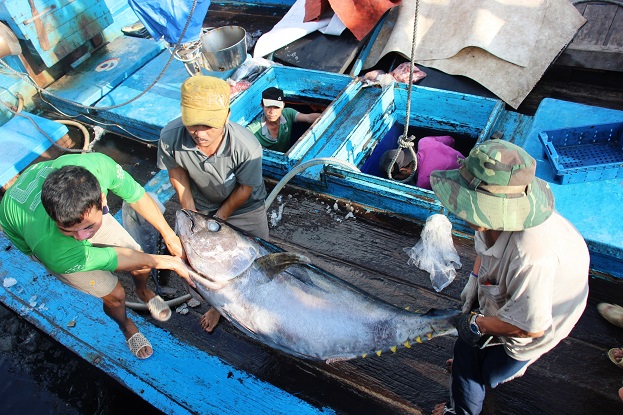 Theo ông Việt, tàu ông chuyên đánh bắt bằng nghề câu cá ngừ đại dương và lưới chụp tại ngư trường Trường Sa. Chuyến vừa rồi có thu nhập khoảng 300 triệu đồng, chia đều cho 6 thuyền viên.
