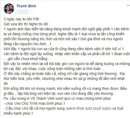 Sao Việt và người hâm mộ đang lo lắng NSUT Vũ Thành Vinh mắc bệnh lạ hôn mê sâu