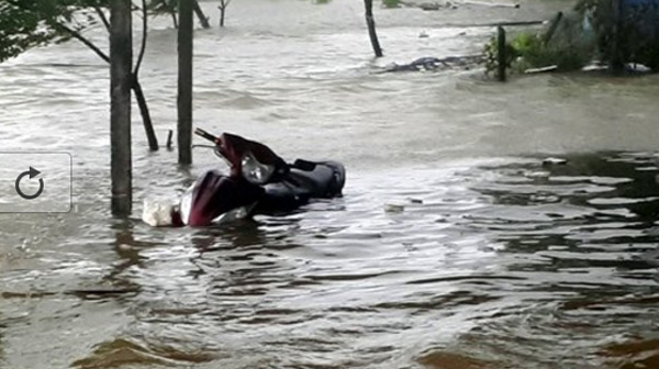 Nước biển dâng cao đã tràn vào nhà dân tại thôn Kim Phượng, xã Thạch Kim, huyện Lộc Hà. Trong ảnh, chiếc xe máy gần bị ngập lút (Ảnh: **********)