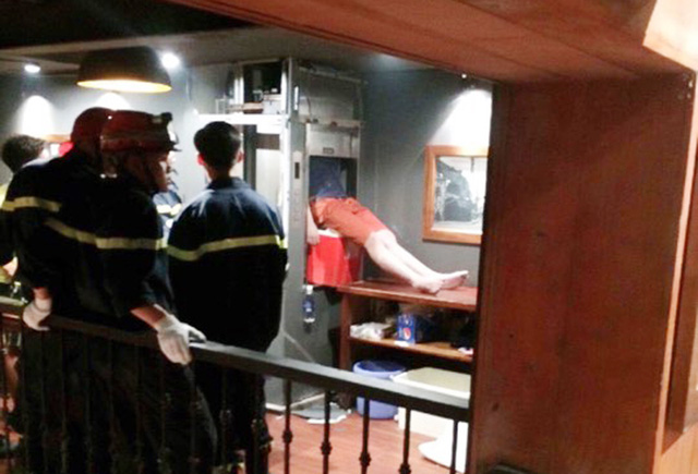 Thông tin ban đầu, thời điểm đó khi phát hiện một nam thanh niên bị kẹt phần đầu trong thang máy vận chuyển thức ăn, ngay lập tức nhiều người đã tìm cách giải cứu nạn nhân, đồng thời báo cho cảnh sát 113 và lực lượng PCCC đến giúp đỡ.