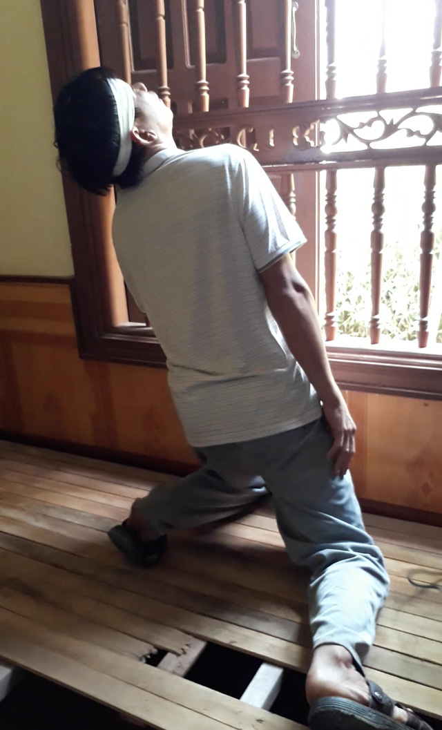 Người nhà chị Bình thuật lại khi phát hiện chị treo cổ trong phòng ở tư thế chân vẫn trên giường.