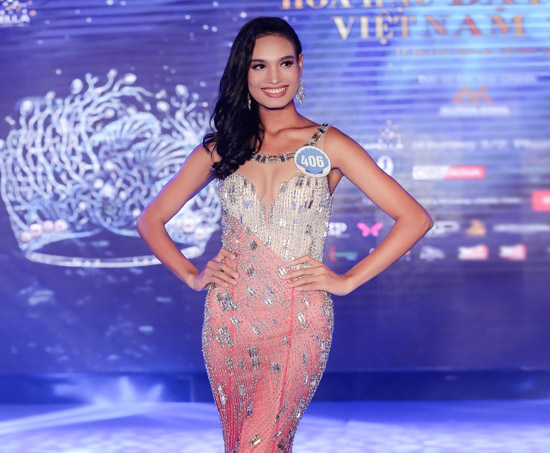 Trong đêm thi ṿng bán kết của Hoa hậu Đại dương 2017 diễn ra tại TP HCM, Cẩm Tú - con gái của diễn viên Kiều Trinh phim 'Bi, đừng sợ' tự tin khoe dáng ở phần thi trang phục dạ hội. Cô là gương mặt quen thuộc với khán giả qua nhiều bộ phim truyền h́nh và điện ảnh, trong đó có 'Dịu dàng' đóng cùng Dustin Nguyễn, 'Bạn ma', 'Tiệc trăng tṛn'... bán kết của Hoa hậu Đại dương 2017 diễn ra tại TP HCM.