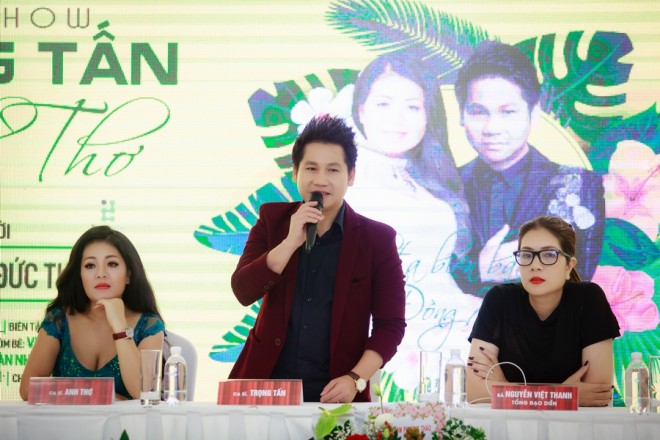 Anh Thơ và Trọng Tấn tổ chức liveshow chung. Cả hai đều sinh năm 1976 và là đồng hương. Nữ ca sĩ chia sẻ đầy hóm hỉnh về hành trình song ca cùng người bạn Trọng Tấn trong buổi ra mắt liveshow "Tình ta biển bạc đồng xanh 2" vào ngày 3/10 tại Hà Nội.