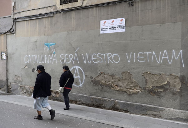 3.Ảnh của Josep Lago chụp tại Barcelona hôm 03/10/2017 bức tường có dòng chữ: "Catalonia sẽ là Việt Nam của các ngươi".