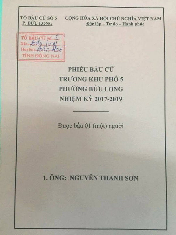 Phiếu bầu cử của nước Cộng hòa Xã hội Chủ nghĩa Việt Nam: phiếu được phép bầu 1 người trên tổng số ứng cử viên là 1 người...chỉ làm trò hề cho thiên hạ và tốn tiền thuế của dân..
