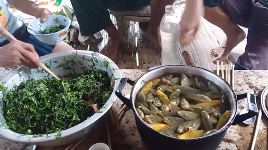 Một đoạn clip ngắn về một bữa ăn đang gây chú ý khi trên bàn chỉ có một chậu rau và nồi cá. Điều đáng nói đây là những chú cá to bằng 2 ngón tay và hoàn toàn còn sống, nhảy tanh tách trong nồi.