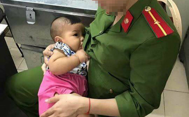 Bé trai được cán bộ Công an phường Mỹ Đình 2 cho bú.