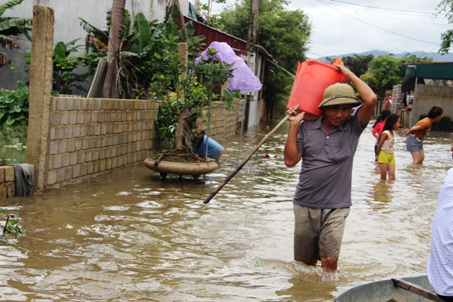 Ông Vũ Quang Thơm - Chủ tịch UBND xã Tượng Sơn, cho biết, do ảnh hưởng áp thấp nhiệt đới, trời mưa to, nước dâng cao, bên cạnh đó, hồ Yên Mỹ xả lũ, khiến ba thôn nêu trên bị cô lập hoàn toàn. Hiện tại, chính quyền địa phương đã giúp bà con bảo vệ người và di chuyển tài sản, đồng thời lên phương án hỗ trợ lương thực cho bà con.