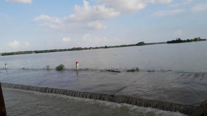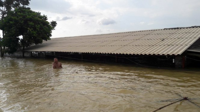 Tuy nhiên, theo lãnh đạo huyện Chương Mỹ, do lượng nước dâng quá mức báo động 3, nên phải có phương án xả tràn qua đê. Nhiều nơi nước ngập lênh láng.