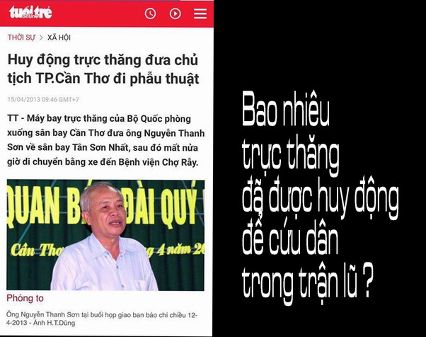 11. Bộ Quốc Phòng đã huy động trực thăng đi cứu lãnh đạo. Nhưng lũ lụt chẳng thấy một cái nào. MẠNG CỦA ÔNG CHỦ VÀ MẠNG CỦA ĐẦY TỚ, NÓ KHÁC XA LẮM!