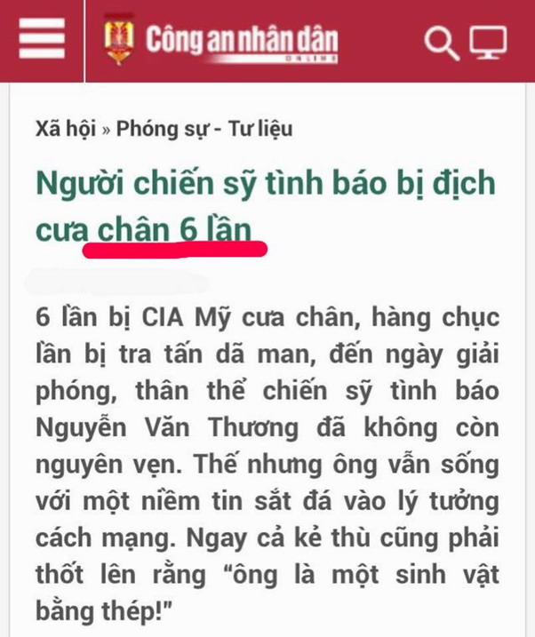 13. Không hiểu đồng chí VC này có mấy chân mà bị CIA cưa tới 6 lần.