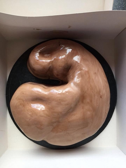 Sharon đã đặc biệt chọn một chiếc bánh được uốn cong tinh xảo trông giống như bắp tay săn chắc cuồn cuộn của bạn trai cô nhân dịp sinh nhật lần thứ 32 của anh.