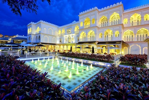 Lâu đài được thiết kế theo dáng dấp của ngôi đền cổ Taj Mahal, gồm 19 phòng, mỗi phòng được thiết kế hoàn toàn khác biệt nhưng vẫn tuân theo 2 gam màu chủ đạo là trắng và đen,. Điểm đặc biệt nữa của tòa lâu đài này là trong khuôn viên vườn chỉ trồng 1 loài cây duy nhất là huyết dụ.
