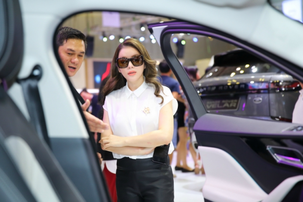 Kết xế hộp mới, Lý Nhã Kỳ quẹt điện thoại mua xe 12,5 tỷ đồng ngay tại triển lãm ôtô