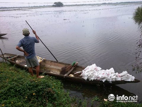 Sau khi chim bị mắc bẫy, người dân lập tức chèo đò ra bắt ngay.