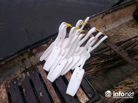 Khi chim trời bay ngang thấy “chim giả” hoặc “chim mồi” đậu kín, trắng cả cánh đồng và chúng cứ tưởng là bạn nên lập tức “hạ cánh” xuống cánh đồng nước đã dâng cao và đậu vào những cái bẫy đang chờ sẵn.