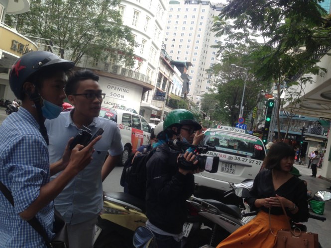 Bảo vệ cửa hàng Khaisilk 101 Đồng Khởi “cấm cửa” báo chí