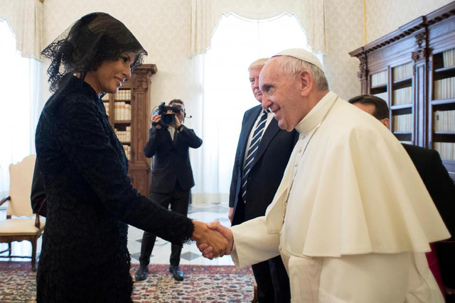 Bà Melania bắt tay Giáo hoàng Francis trong chuyến công du Italy hồi tháng 5. (Ảnh: Reuters)