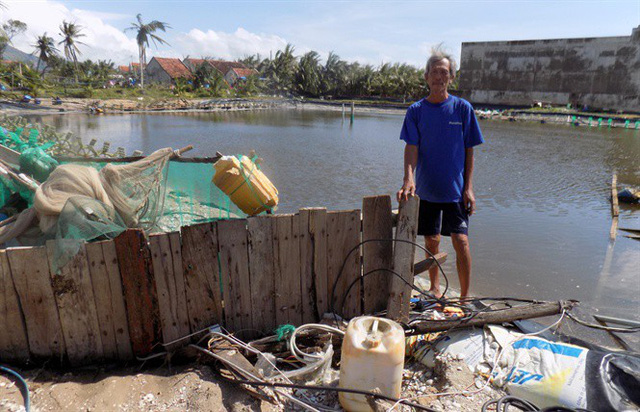Như gia đình ông Lộc có 2 ao nuôi trải bạt, trong đó 1 ao (1.200m2) thả 30 vạn con đã nuôi 2 tháng, tôm đạt size hơn 100 con/kg và 1 ao (1.600m2) thả 45 vạn con đã nuôi 1,5 tháng cũng bị bão đánh vỡ bờ, tôm thoát sạch ra ngoài, thiệt hại trên 500 triệu đồng (chưa kể thiệt hại công trình ao nuôi).