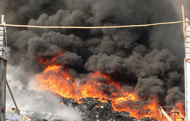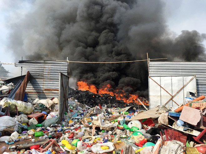 Rất may, vụ hỏa hoạn không gây thiệt hại về người nhưng làm vựa phế liệu rộng hàng trăm mét vuông bị thiêu rụi, hàng chục người dân có nhà sống cạnh đám cháy một phen kinh hoàng.