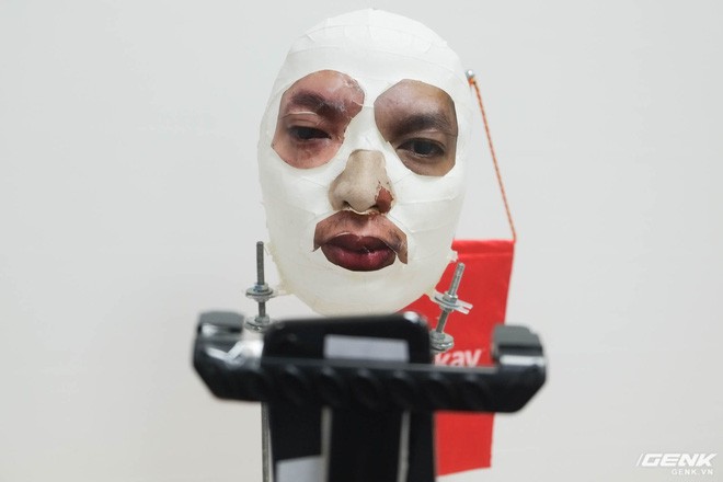 CEO Nguyễn Tử Quảng chia sẻ sau buổi họp báo: “Chắc các bạn đều thắc mắc là tại sao chiếc mặt nạ này chỉ có một số chi tiết được dán ảnh, còn toàn bộ phần còn lại dán băng dính trắng, vì sao lại không phủ toàn bộ chiếc mặt nạ giống như khuôn mặt người thật. Bởi nếu làm vậy AI sẽ phân biệt được đâu là mặt giả và đâu là mặt thật”.