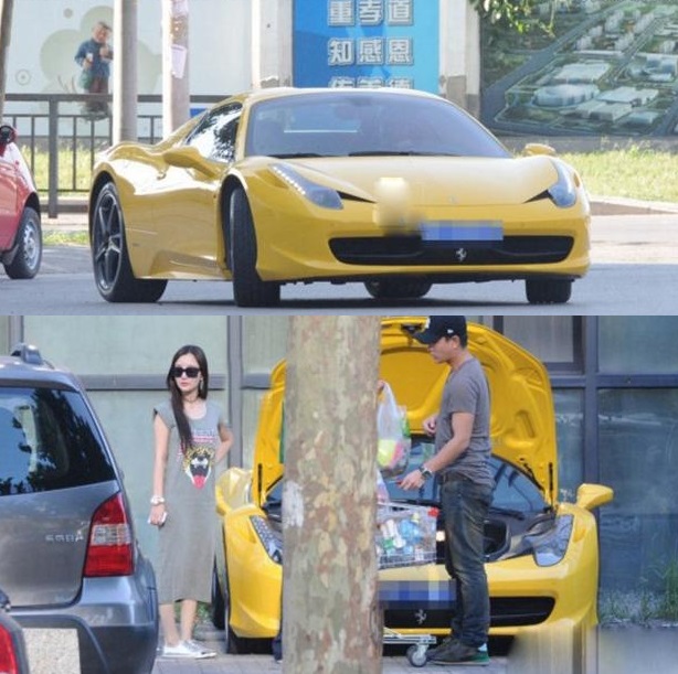 Cặp vợ chồng ngôi sao còn sở hữu chiếc Ferrari 458 màu vàng có giá 4,5 triệu NDT (15 tỉ đồng) đã ngưng sản xuất.