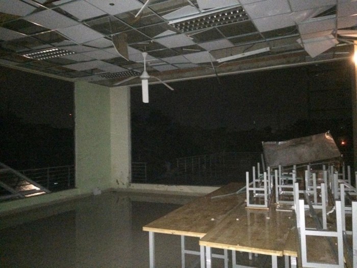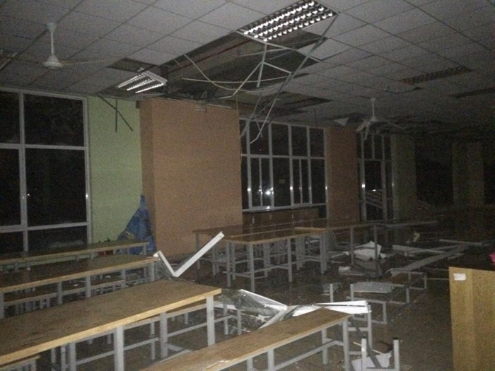 Theo ghi nhận của cộng tác viên báo Thanh Niên tại đây, nhiều khu nhà của ký túc xá bị mất điện. Khu D5,,D6 bị thiệt hại nhiều nhất. Thậm chí một chiếc xe ba gác máy chở đồ cho một khu ăn uống tại đây cũng bị gió mạnh quật ngã ra giữa đường đi.