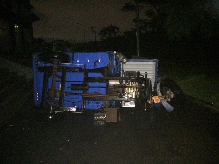 Một chiếc xe ba gác máy bị gió giật quật ngã