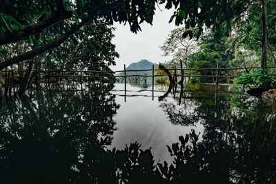 Đi qua thác nước thứ 2, du khách sẽ đi ngang qua một cái cây cầu gỗ nhỏ. Đến đây không gian đột ngột trở nên yên tĩnh tuyệt đối, không còn nghe thấy tiếng thác nước đổ, dù không cách xa lắm. Đứng trong bầu không khí tĩnh lặng, ngắm mặt hồ nước trong veo êm ả, phía xa xa là dãy núi phủ đầy canh xanh... tất cả như một bức tranh thiên nhiên khiến du khách như cảm thấy mình đang ở giữa chốn bồng lai.