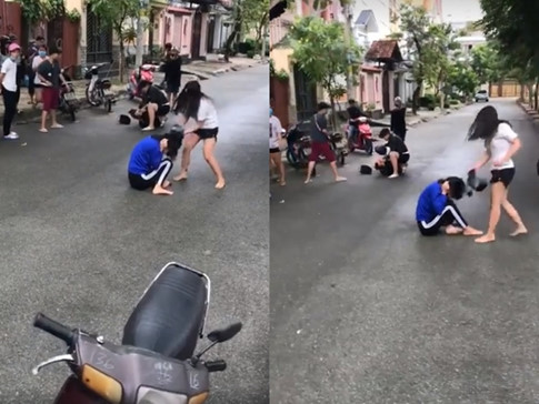 Ngày 19.11, mạng xã hội xuất hiện đoạn video clip ghi lại cảnh một thiếu niên mặc áo thun trắng, tóc dài khoảng 14 - 16 tuổi cầm mũ bảo hiểm đập tới tấp vào đầu em gái mặc áo xanh, quần thể dục đang ôm đầu ngồi gục dưới đường.