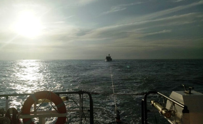 Chiều 20.12, tàu cá BĐ 98116 TS do ông Trần Bảo (Hoài Nhơn, Bình Định) làm thuyền trưởng trên đường về bờ tránh bão số 15, khi đến vị trí cách mũi Vũng Tàu 106 hải lý về phía đông nam thì tàu hết nhiên liệu, nước tràn vào tàu.