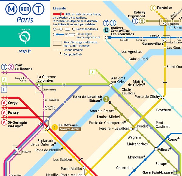 Xe điện ngầm Paris trông có vẻ chằng chịt ghê gớm trên bản đồ, thật ra chỉ có 16 đường đánh số khác nhau đa số nằm ngầm trong lòng đất thỉnh thoảng trồi lên lộ thiên rồi lại chui sâu xuống dưới mất dạng. Khoảng cách trung bình của 16 đường sắt ngắn ngủi tỏa ra từ trái tim thủ đô đến các quận khác nhau 20 cái và những tỉnh ngoại ô với các thành phố lớn 77 (Seine-et-Marne,78 (Yvelines), 91 (Essone), 92 (Hauts de Seine), 93 (Seine Saint Denis), 94 (Val de Marne), 95 (Val dOise) chỉ có 570 thước với thời gian chạy suốt là một phút rưỡi.
