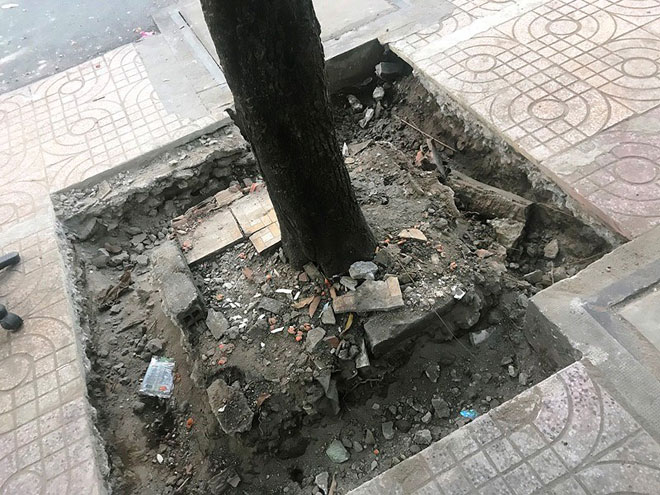 Ông Trịnh Kiểm, Chánh văn phòng Hiệp hội công viên cây xanh Việt Nam cho rằng, tình trạng công trình thi công chỉnh trang vỉa hè dịp Tết xâm hại cây xanh cứ tái diễn cho thấy việc xử lý vấn nạn này chưa quyết liệt.