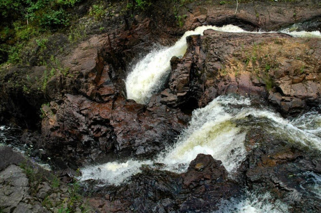 Khoảng 2,4 km trước khi sông Brule đổ xuống hồ Superior trong vườn quốc gia, dòng nước đã bị phân làm hai nhánh cấu trúc đá rồi lên.