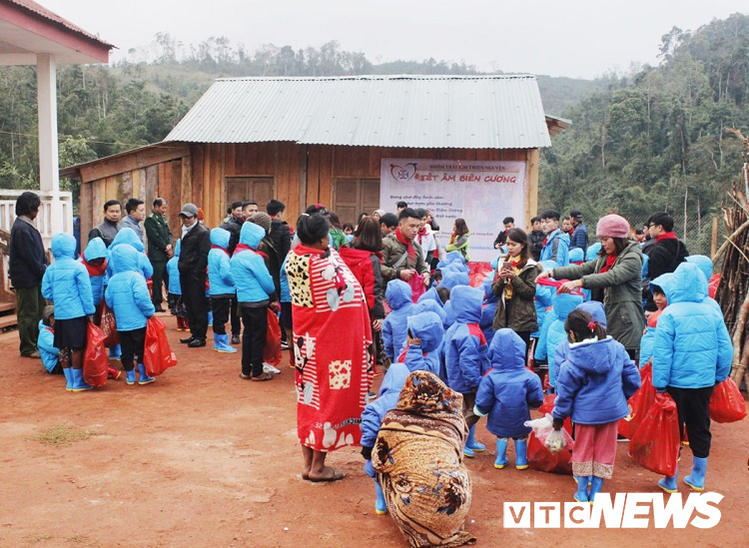 Nắm bắt được khó khăn của người Ma Coong, ngày 13/1 nhóm “Trái Tim Thiện Nguyện” (Hà Tĩnh) cùng các bạn đồng hành ở Quảng Bình tổ chức chương trình “Tết ấm biên cương” mang chăn và áo ấm đến cho những em nhỏ người Ma Coong. (Ảnh: Trần Anh)
