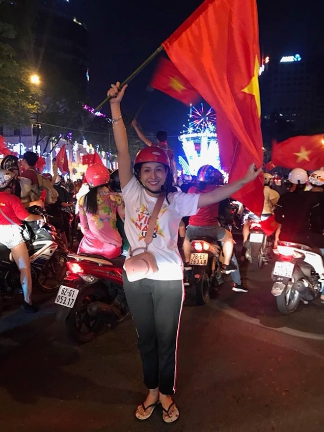 Chết cười Mỹ Tâm "đi bão" trên "siêu xe" mừng U23 VN