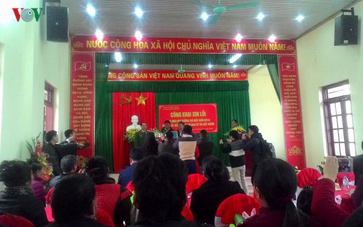 Chiều 29/12, tại UBND xã Trù Hựu, huyện Lục Ngạn, Bắc Giang, cơ quan cảnh sát điều tra công an tỉnh Bắc Giang tổ chức công khai xin lỗi người tù oan Mưu Quý Sường (thôn Gốc Vối, xã Trù Hựu, Lục Ngạn) bị cáo buộc tội giết vợ nhưng đã mất cách đây 5 năm. Trong ảnh, đại diện các cơ quan chức năng tại buổi xin lỗi.