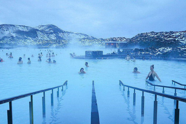 Suối nước nóng Blue Lagoon nằm gần thị trấn Grindavik, thu hút tới gần 1 triệu du khách ghé thăm mỗi năm nhờ dòng nước ấm áp và màu xanh tuyệt đẹp.