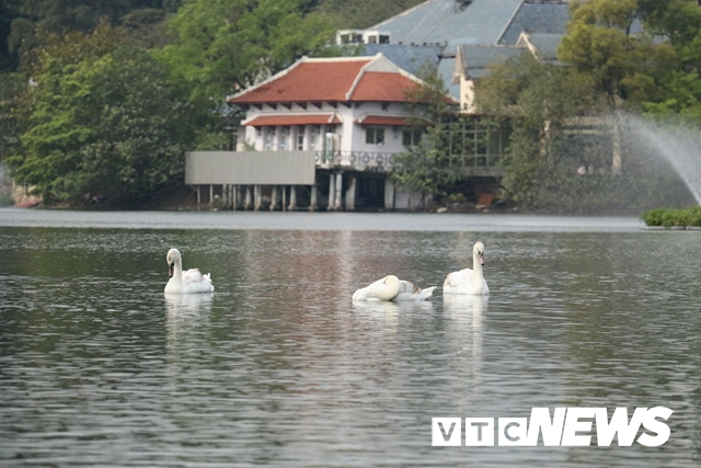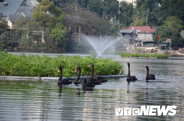 Đàn thiên nga gồm 7 con đen và 5 con trắng. Theo lãnh đạo Công ty TNHH MTV Thoát nước Hà Nội, việc thí điểm thả thiên nga ở Hồ Gươm được tạm dừng do nhiều ý kiến trái chiều, đặc biệt một số nhà khoa học cho rằng loài này không phù hợp với lịch sử, văn hóa của Hồ Gươm.