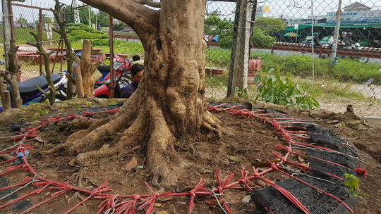 Ngày 6-2, nhiều người khi lưu thông qua cầu Quang Trung (hướng từ quận Ninh Kiều đi quận Cái Răng, TP Cần Thơ) ngỡ ngàng khi nhìn thấy cây mai rất cao và có tán cực rộng đang được để bên trong khu đất.