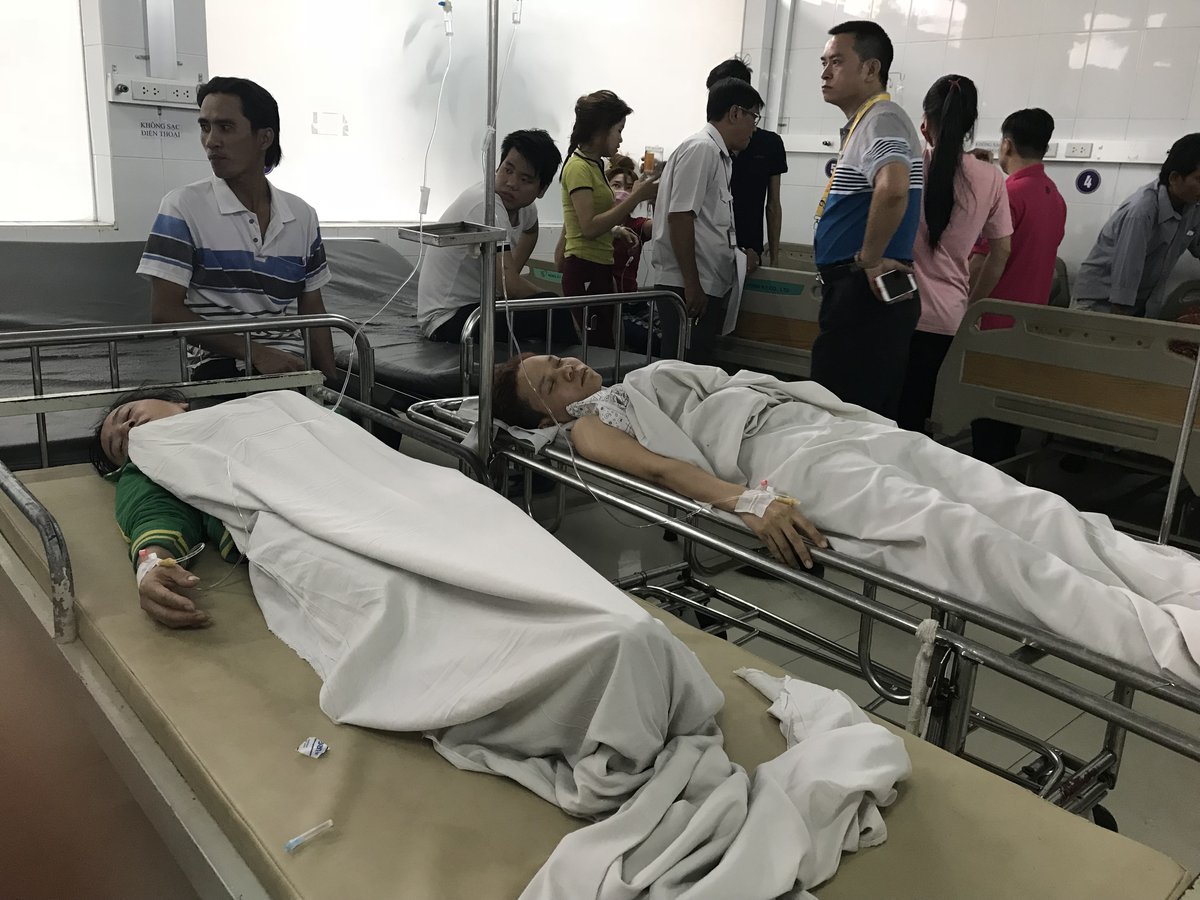 Sau khi quay lại làm việc được khoảng 30 phút, hàng chục công nhân bắt đầu nôn, đau đầu, ngất xỉu... tiếp sau đó là nhiều người khác có triệu chứng tương tự nên được chuyển vào bệnh viện gần khu công nghiệp và bệnh viện tỉnh Bình Dương để cấp cứu.