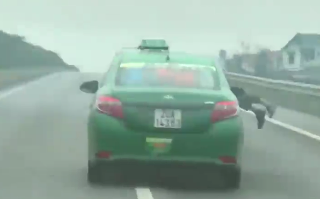 Theo như nội dung được đăng tải, hai chân chiến sỹ công an nằm vắt ngang đầu xe taxi. Mặc dù vậy, chiếc xe vẫn lao vun vút trên đường cao tốc khiến nhiều người xem không khỏi rùng mình.