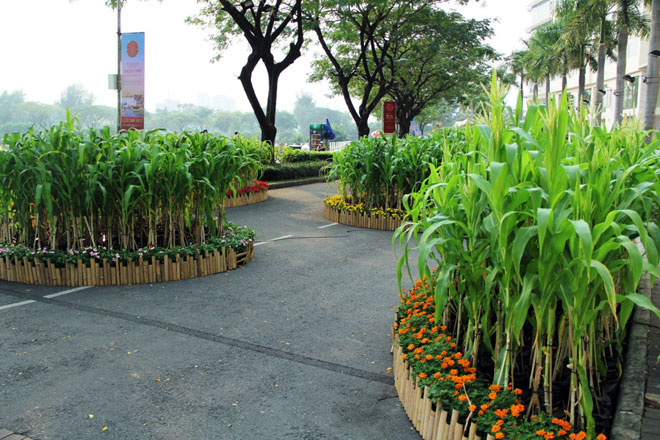 Những ruộng bắp với con đường quanh co, những hàng dừa nước cũng được tái hiện tại hội hoa xuân. Theo ban tổ chức chương trình sẽ khai mạc vào chiều 9.2