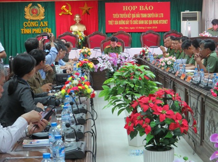 Chiều 12.2, Đại tá Nguyễn Trung Nghĩa - Phó Giám đốc Công an Phú Yên đã chủ trì họp báo chuyên án triệt phá đường dây cờ bạc dưới hình thức cá độ bóng đá tiền tỷ qua mạng internet.