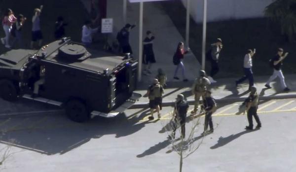 Giới chức cảnh sát hạt Broward cho hay, tiếng súng bắt đầu từ bên ngoài khuôn viên trường học, sau đó tiếp tục xảy ra bên trong trường. Ảnh: AP.
